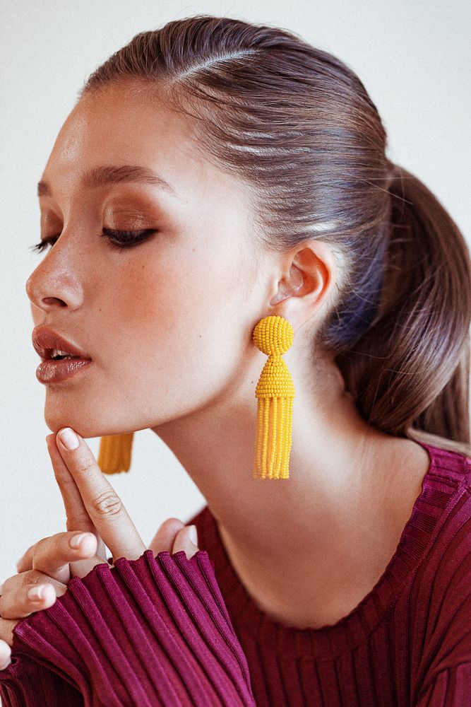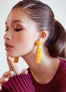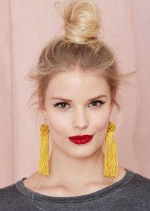Flirty popular earrings tassels are wildly popular among the ladies. They are distinguished by their charming design, which attracts the attention of others. Products can be short and have a length of no more than three inches or be elongated. The second option, as a rule, is made of beads. These accessories look very light and positive.