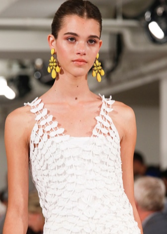 - For earrings from the sea series, you can pick up a delicate dress with a floral print. No less impressive will look attire pastel colors. The tone can be light or dark.