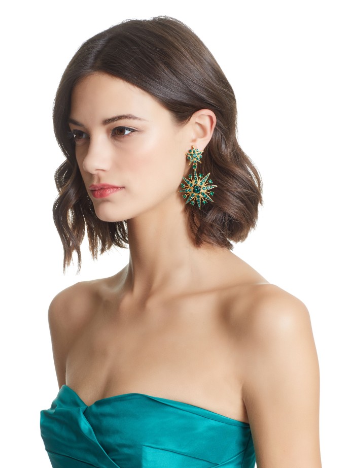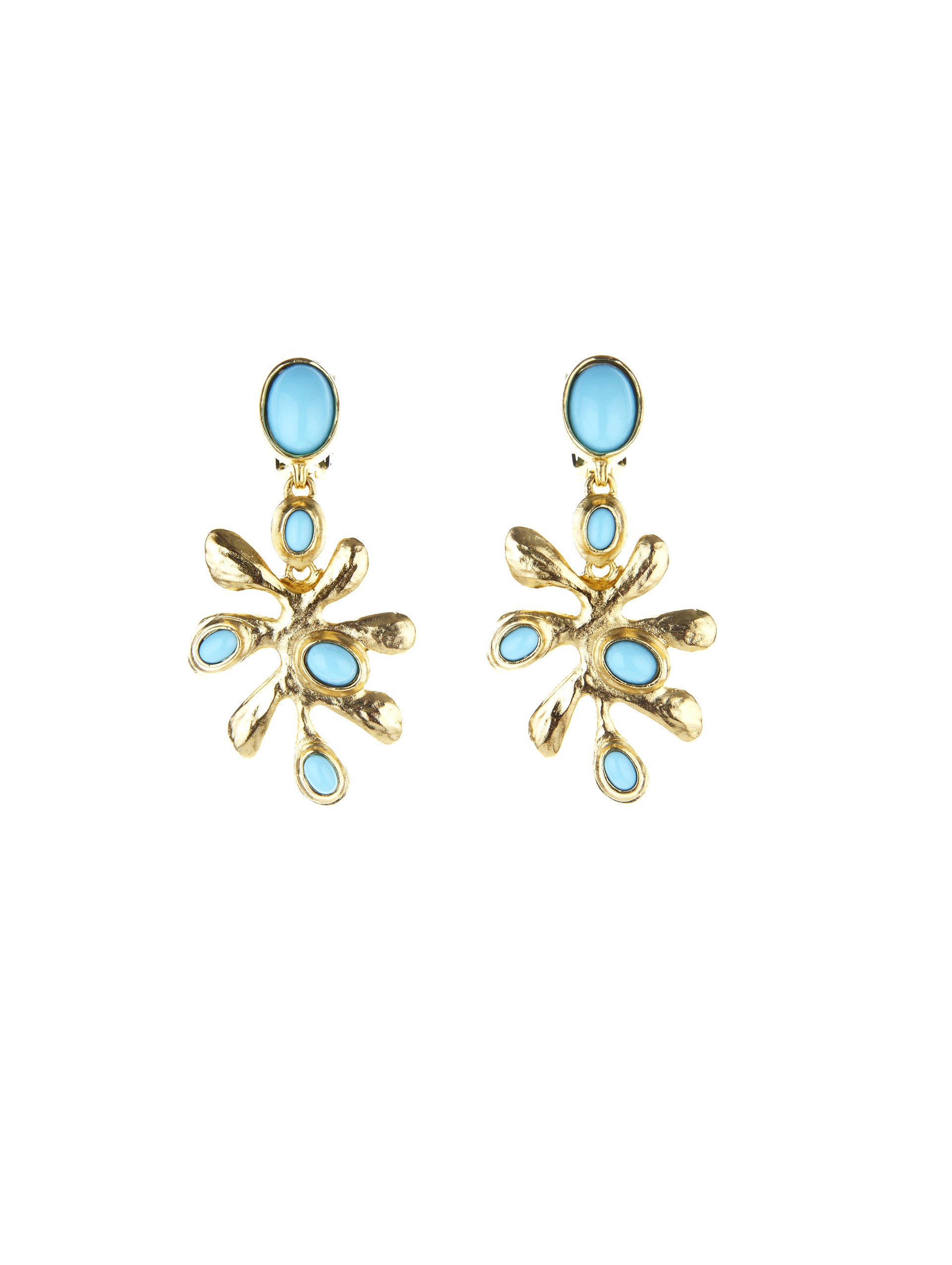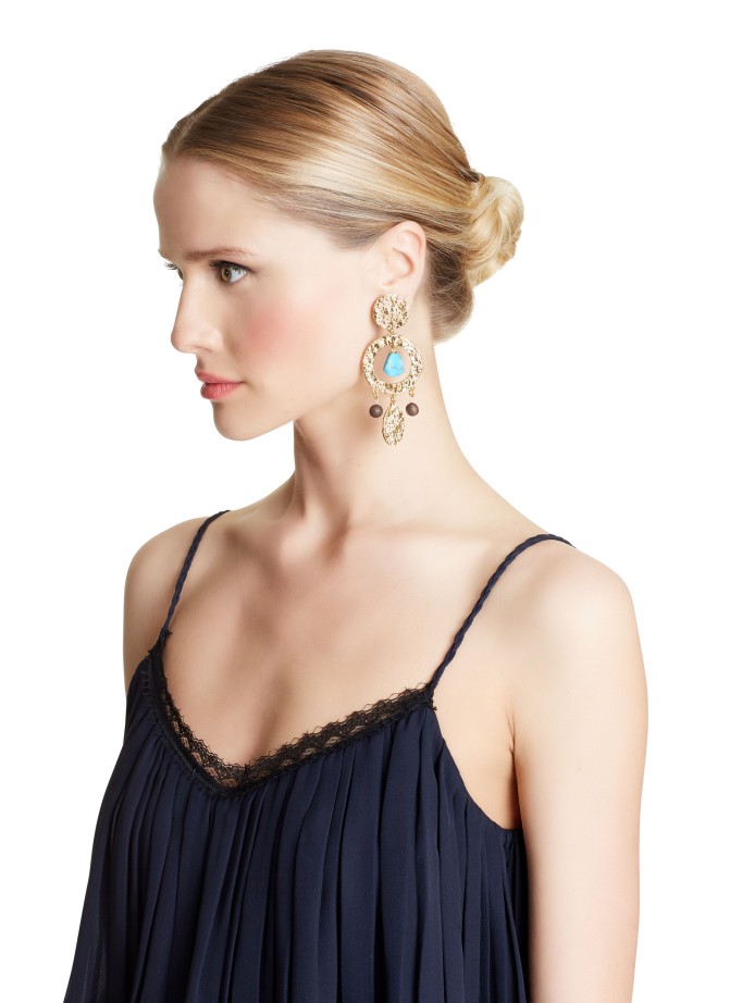 Luxury earrings can be complemented by shining diamonds, sapphires, emeralds or rubies. Premium class jewelery is complemented by coral, turquoise or onyx.