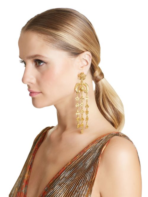 - Another great solution for the evening ensemble are the chandelier earrings. The length and color of the dress can be absolutely anything. You can complement the image with a golden or silver clutch.