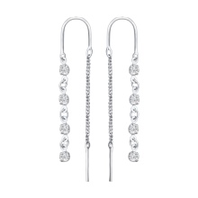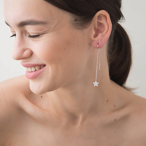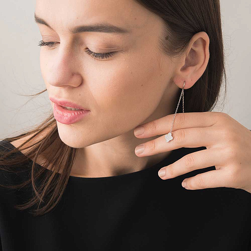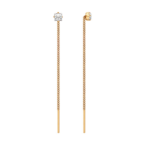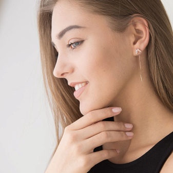 Most girls do not rush to purchase products of this type, worrying about the fact that earrings can be lost. This is meaningless excitement, because the masters carefully and thoroughly think through the entire structure. A long chain located on the outside of the lobe is balanced on the reverse side. For models with precious stones, the front part is slightly shorter compared to the inside.