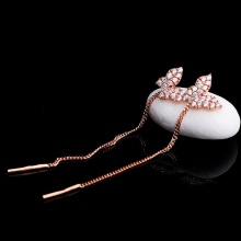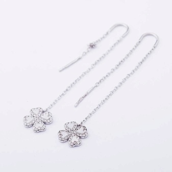 There are unique models from famous jewelry brands. Such earrings are encrusted with precious and semiprecious stones. Luxuriously in the women's ears look diamond plumage - they give their owner chic and charm. They can go to the theater or go to a restaurant.