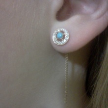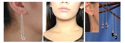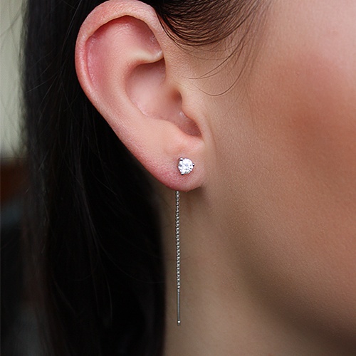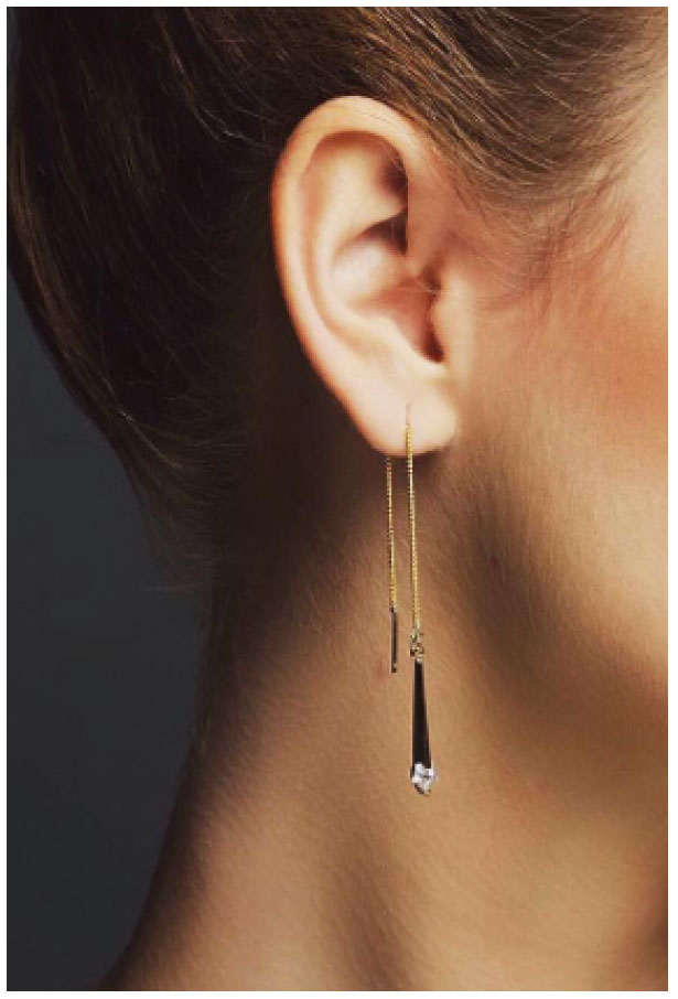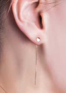 - Products with double attachment - popular and in demand among young people.To insert such earrings, ears must be pierced in two places at a distance of 3-4 cm.