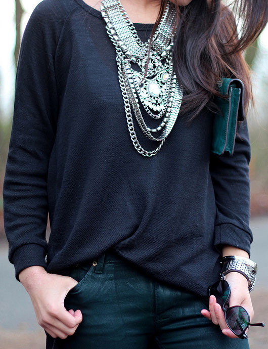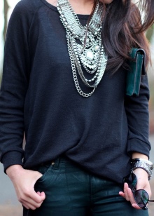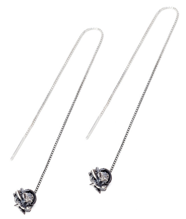 Boots look great with high hair and hair of medium length. In long hair the chains get tangled. You should not wear a high-neck sweater, because the "pendants" can leave ugly puffs. Chain earrings are easy to combine with bracelets that have the same weave.