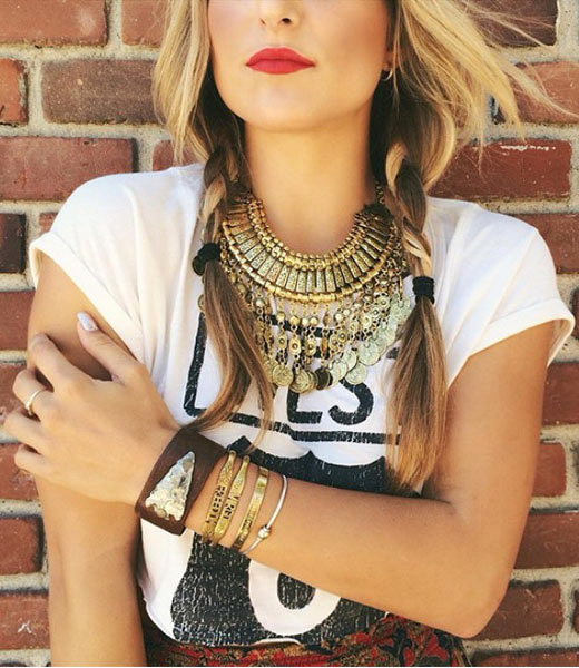Ethnic-style earrings are perfectly combined with t-shirts, casual blouses, jeans - you can create a trendy casual look.