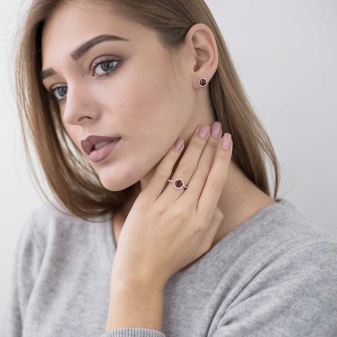 Especially attractive and juicy garnet looks in yellow gold. This combination will refresh the ladies' appearance and give it a special charm and subtle notes of sexuality.