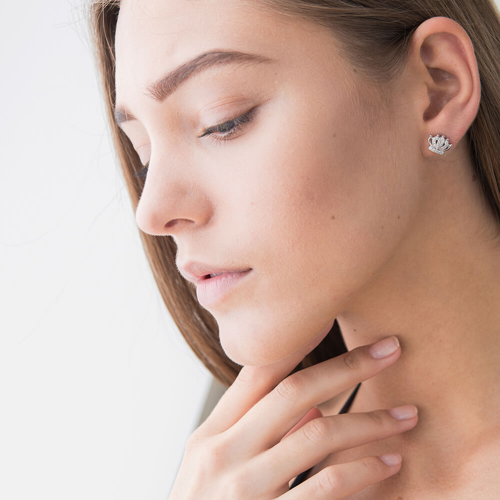 Such jewelry has an affordable price, which has a positive effect on their popularity. Low cost absolutely does not affect the beauty of silver studs, and they look no less attractive than gold pieces. Many people confuse such jewelry with white gold.