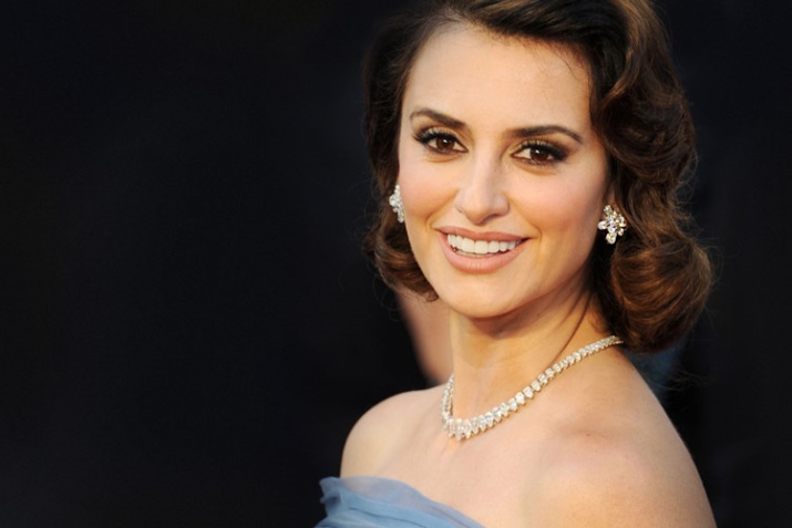 - Hollywood actress Penelope Cruz often decorates feminine dresses with studs and white gold studs. On the ears of this beauty you can find not only accessories of the classical form, but also interesting specimens in the original design.