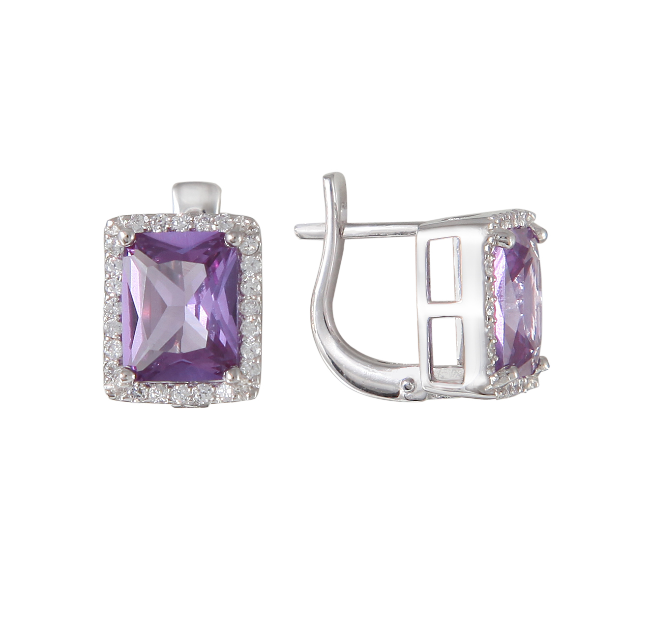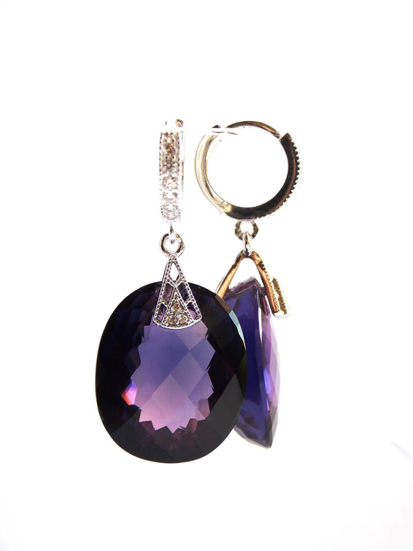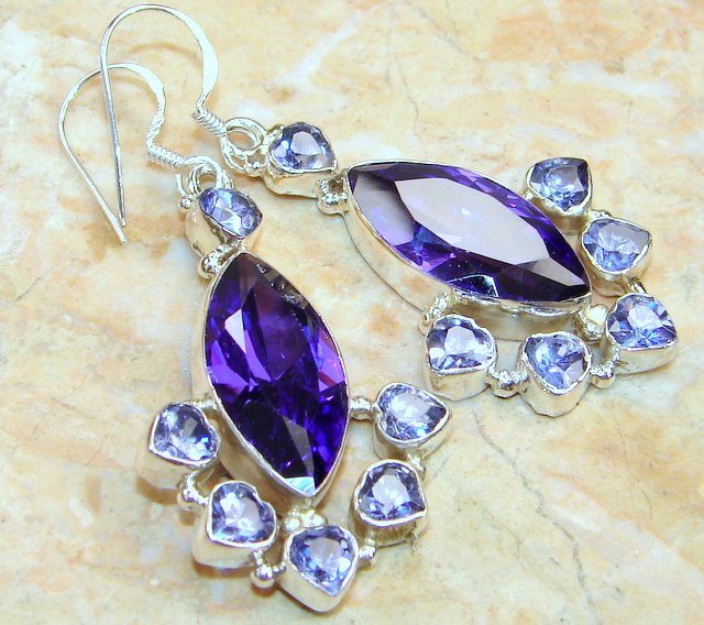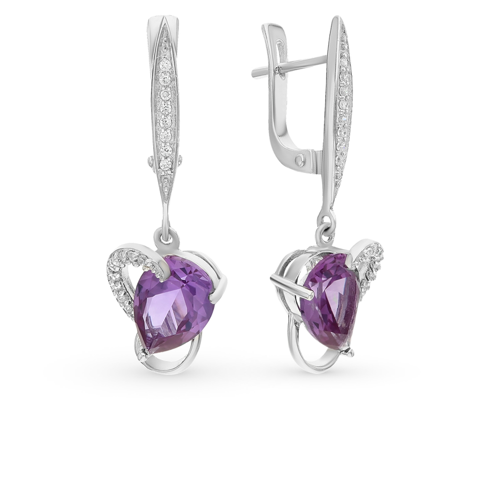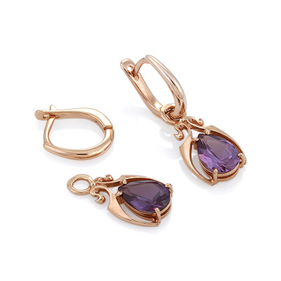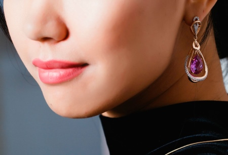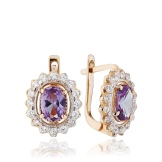 On sale you can see earrings with synthetic alexandrites in silver. Silver earrings are presented with a large number of options. This earrings with pendants, and models with a large rounded stone in the frame. This gem rarely goes in combination with other types of stones, with the exception of cubic zirconias, for models of gold - the same cubic zirconias and diamonds. Small cubic zirconias frame the central stone and serve as a kind of background for it.