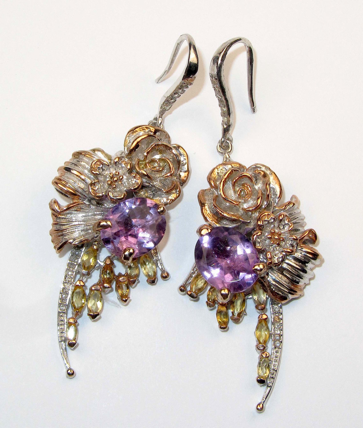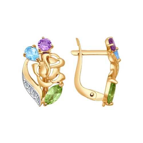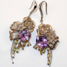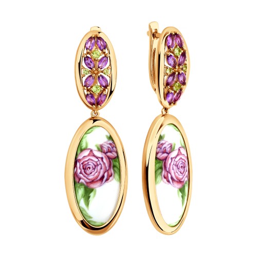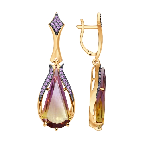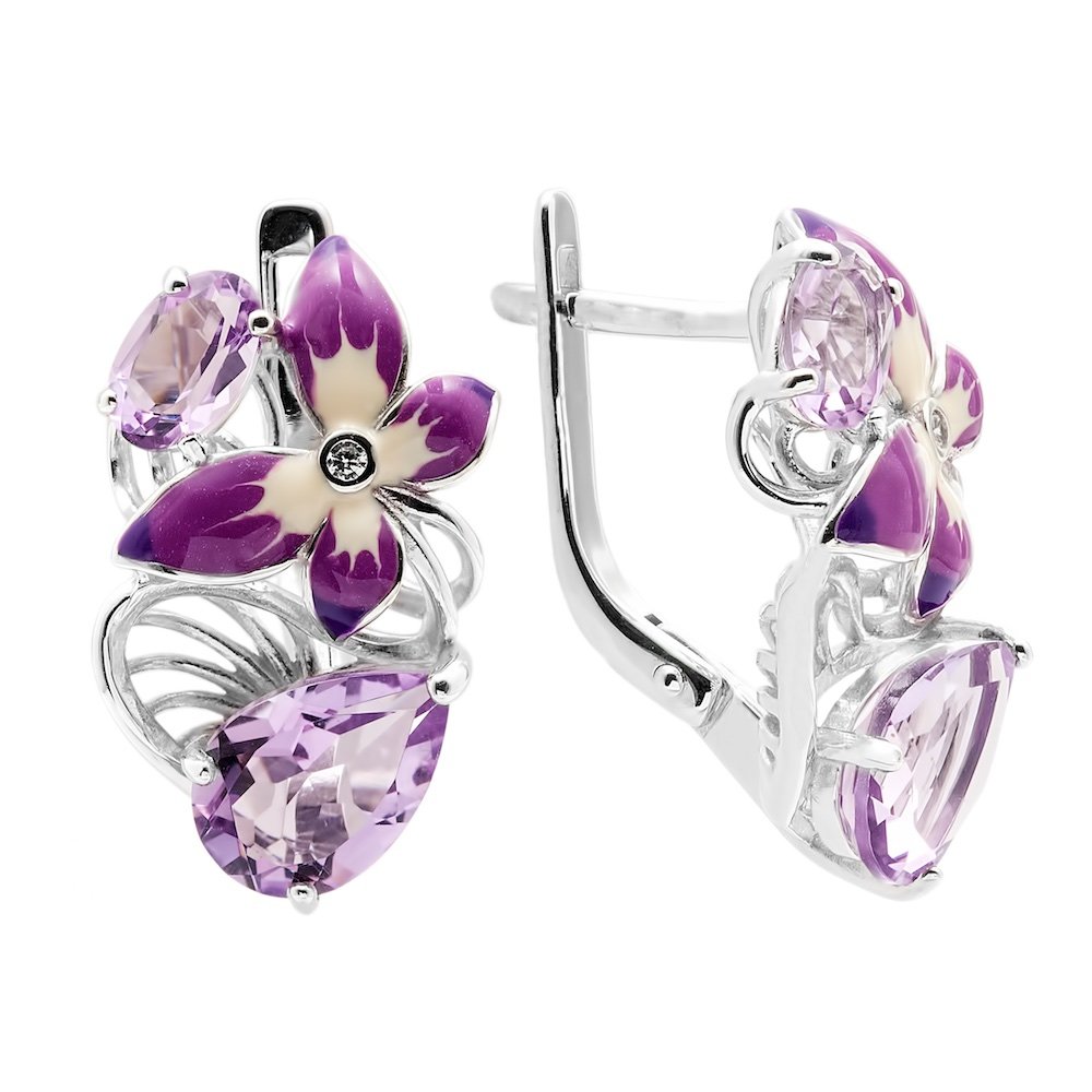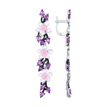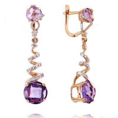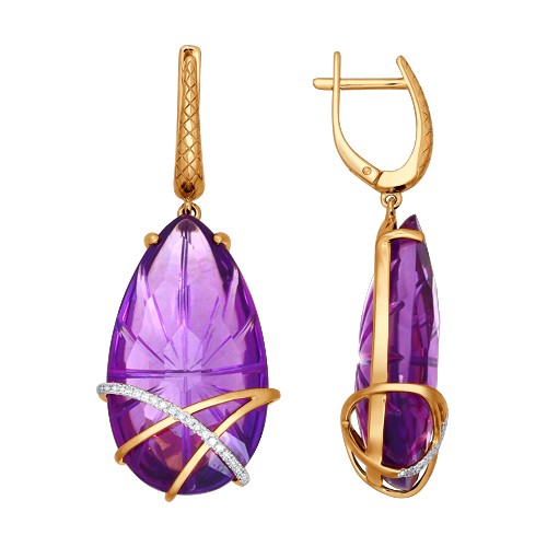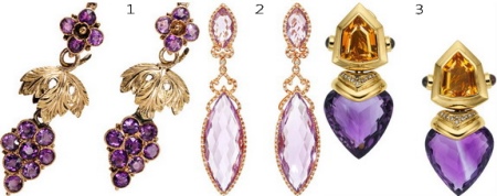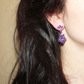 Earrings made of silver or gold with inserts of amethyst of different colors are a very popular jewelry, presented in a wide range.