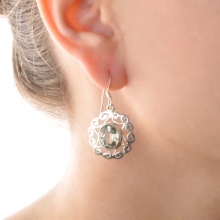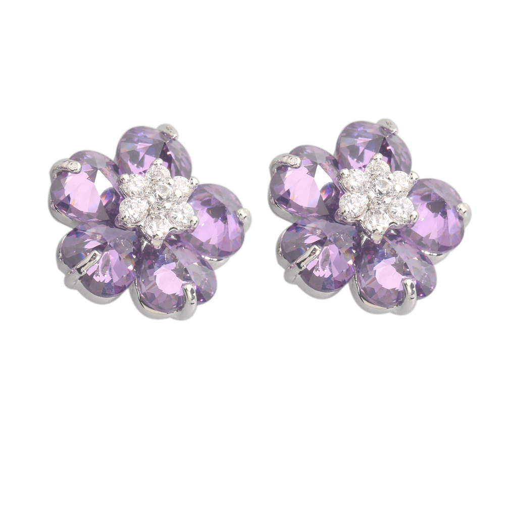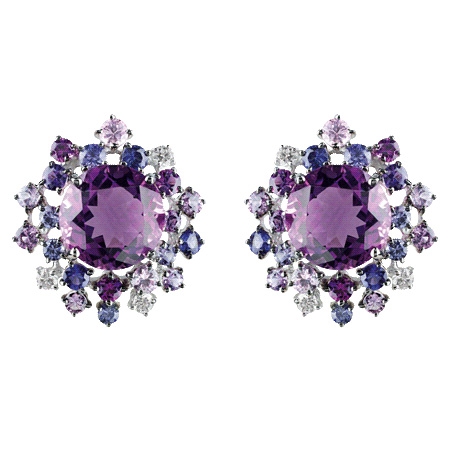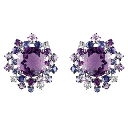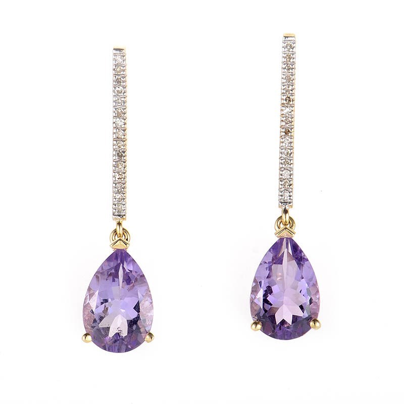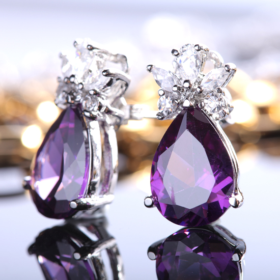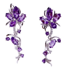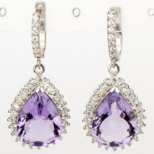 Amethyst in earrings may be the only stone, but it can also be ensemble with other gems. Often framed by cubic zirconias, synthetic stones, which are inexpensive and very effective imitation of diamonds.
