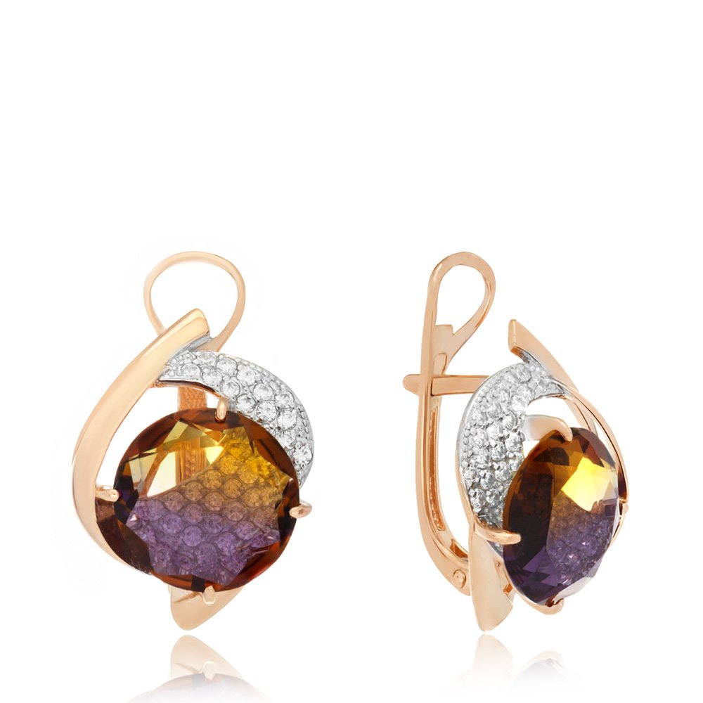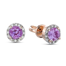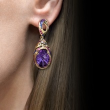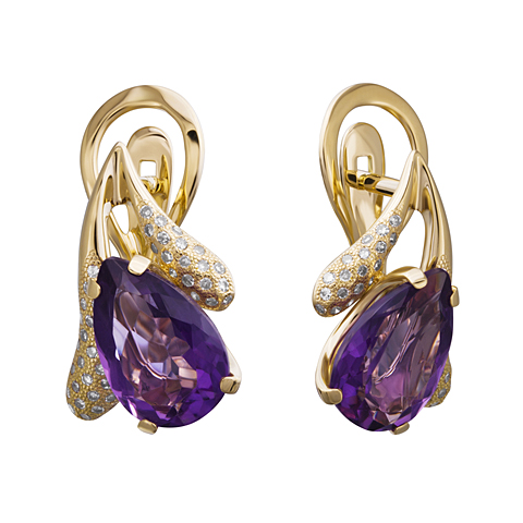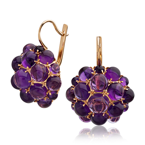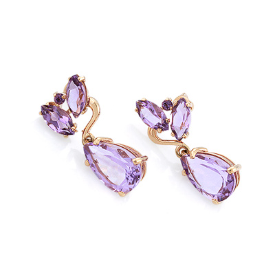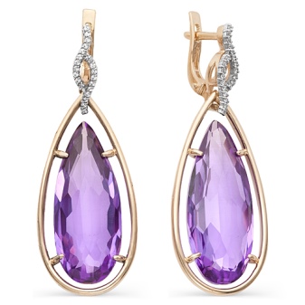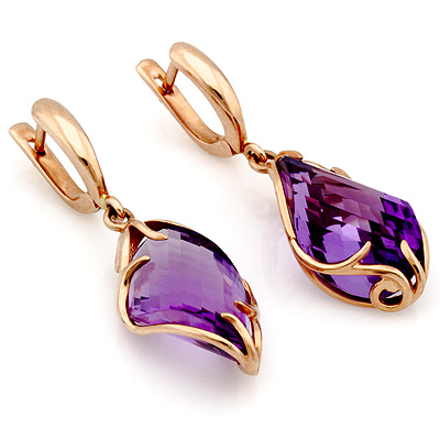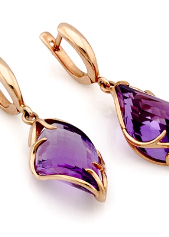 Gold earrings are quite often decorated with amethyst with a brilliant cut type.