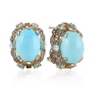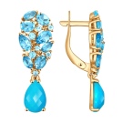 Earrings with turquoise can be presented in gold or silver. This colored stone is most often presented in the form of a cabochon, that is, by grinding and polishing it is given a rounded shape. Such a cabochon may be the only insert in the earrings, and may be framed with other stones or be a part of the composition.