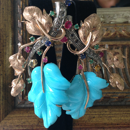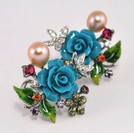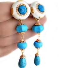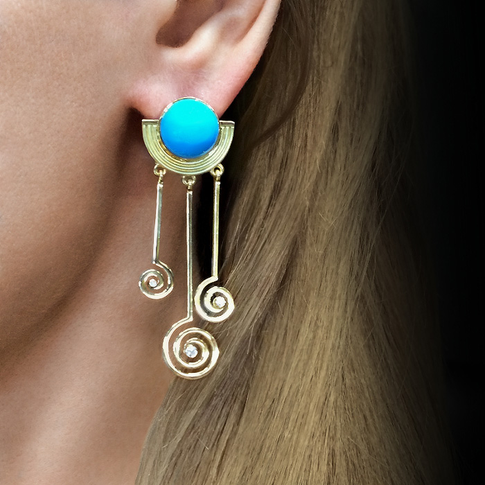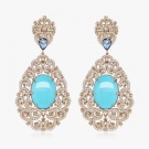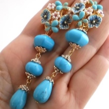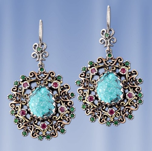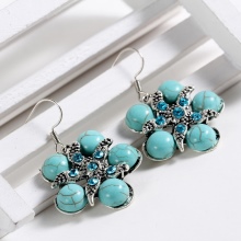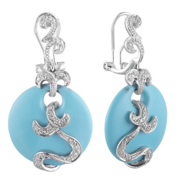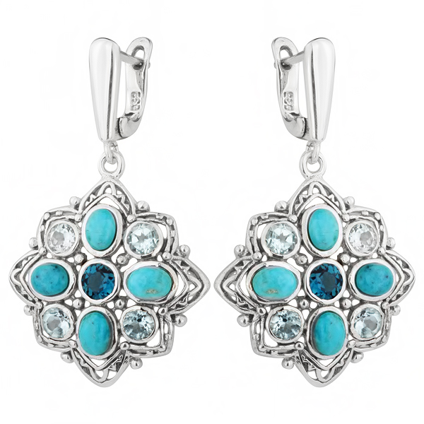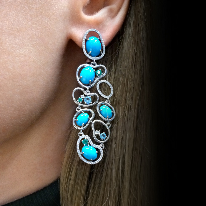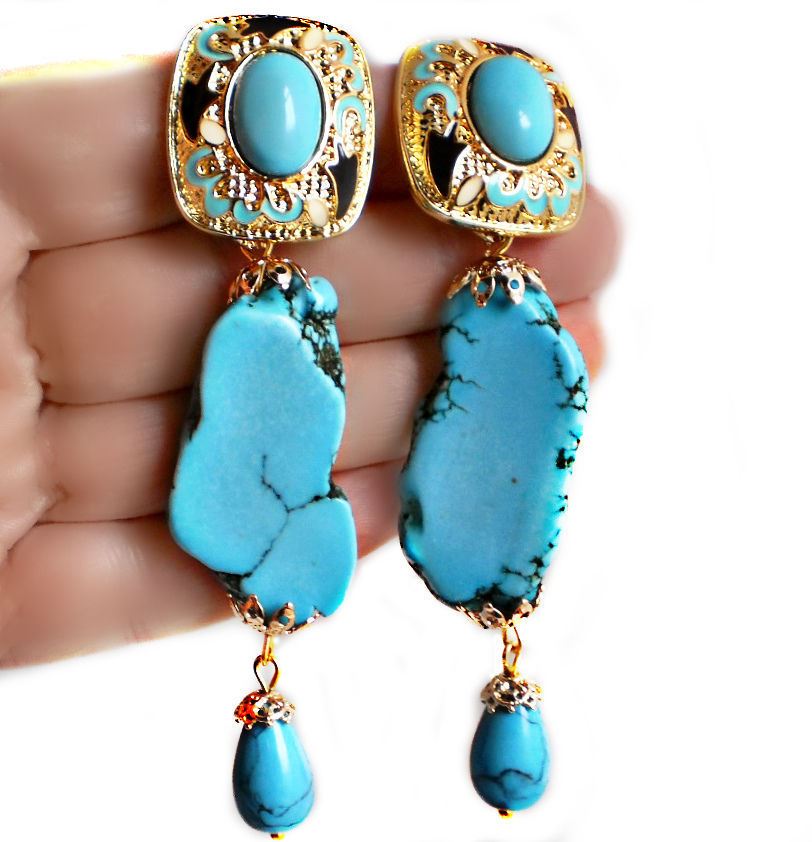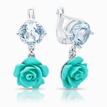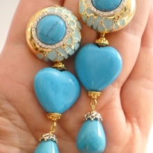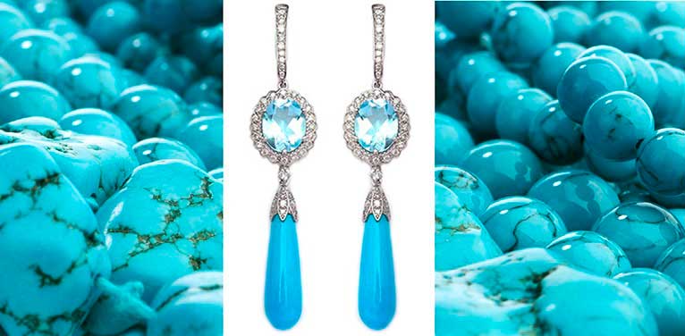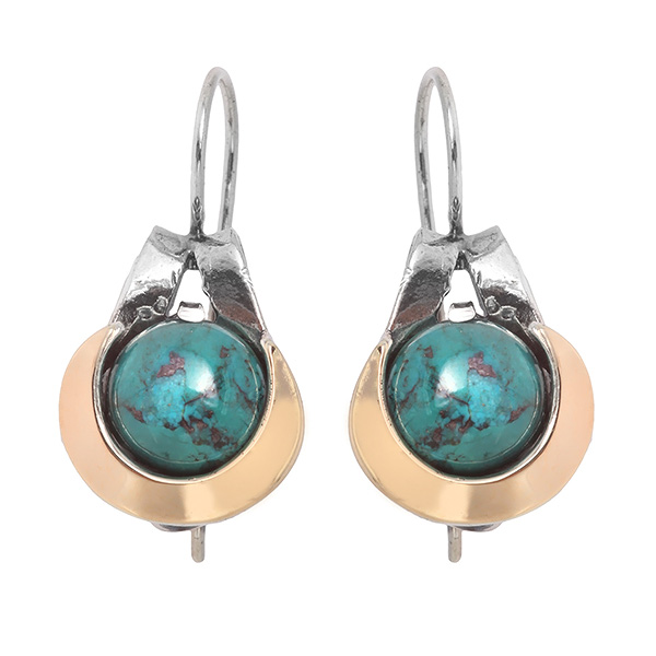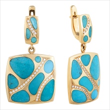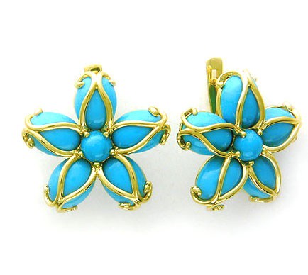High quality turquoise is used in jewelry in combination with gold. In gold earrings it can be combined with diamonds. In silver, you can see natural turquoise of lower quality or pressed, fortified, as well as refined. Cheap natural stones in silver earrings can look very impressive.