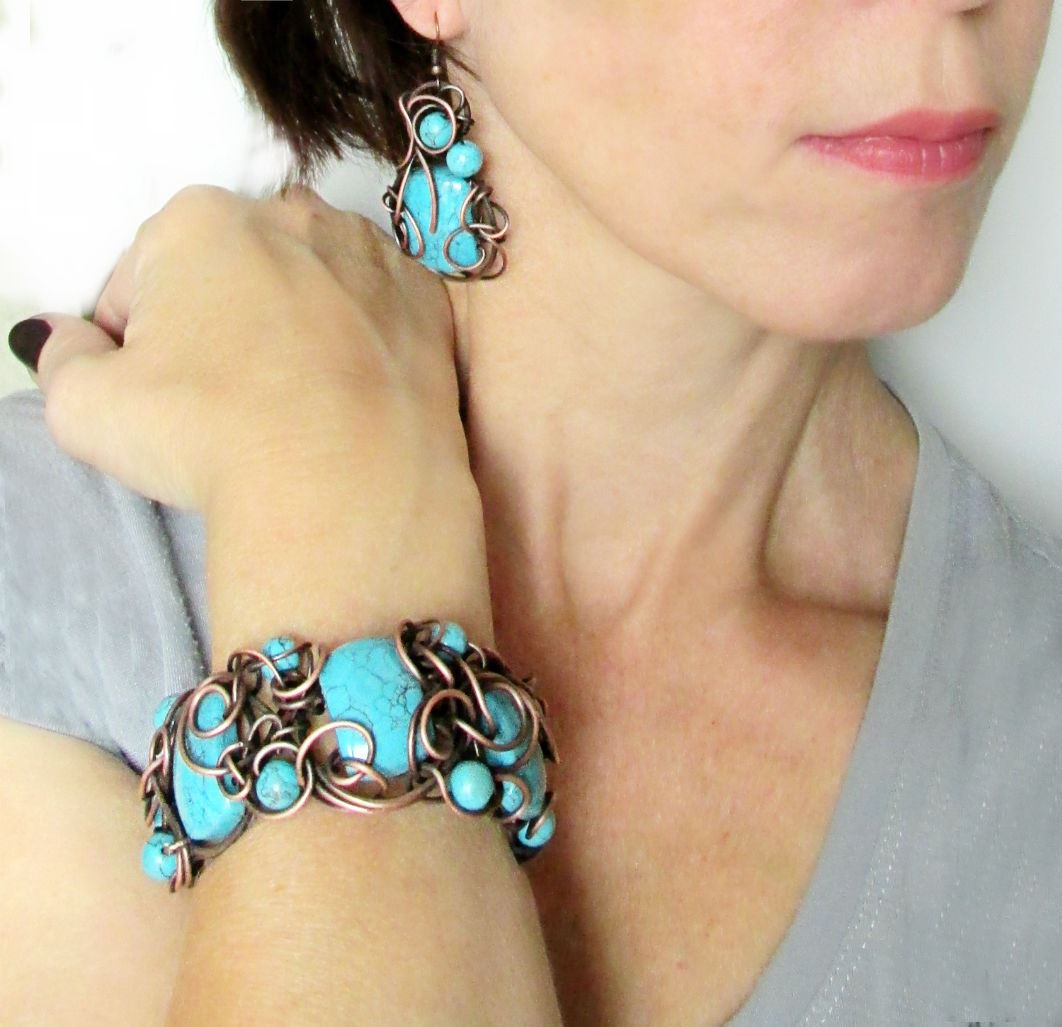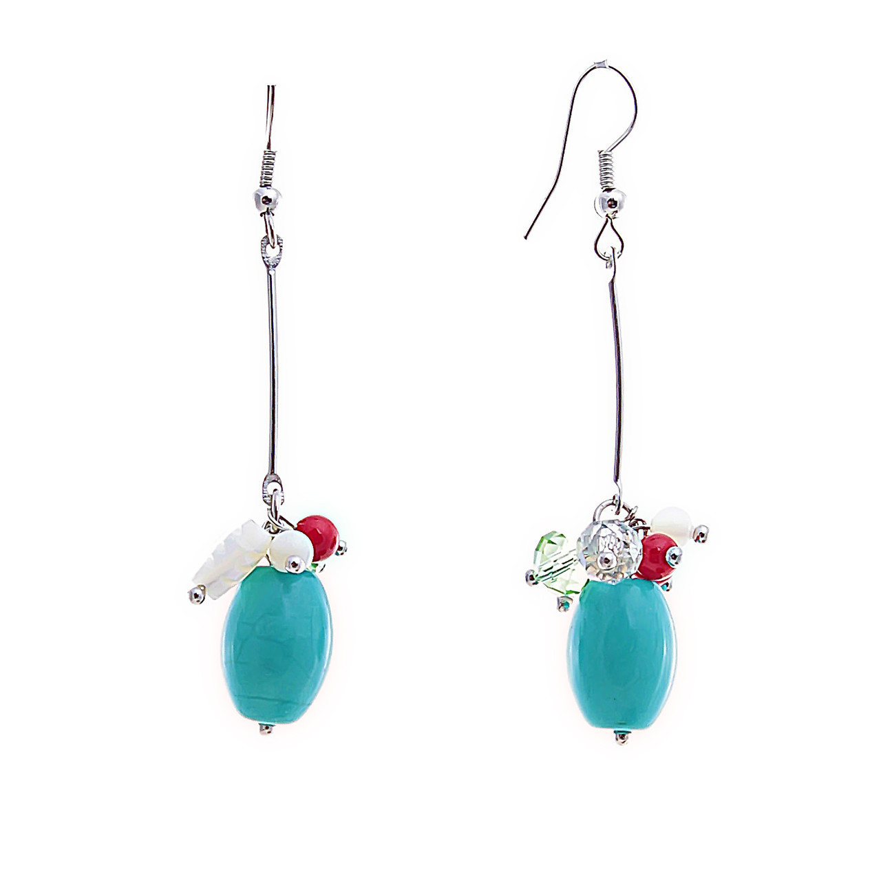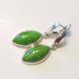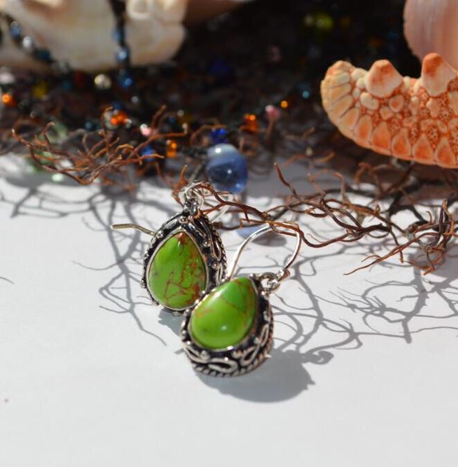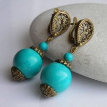 Often, earrings with imitation of turquoise are made of silver, such an insert in jewelry can be unique, and can be combined with synthetic stones of the same color range or with inserts of other colors.
