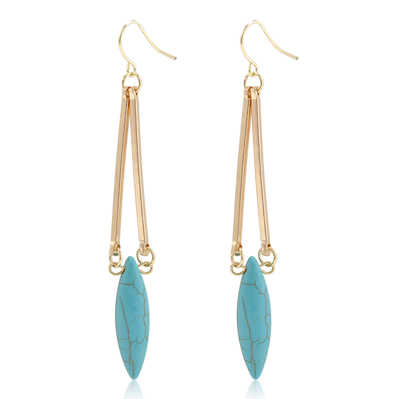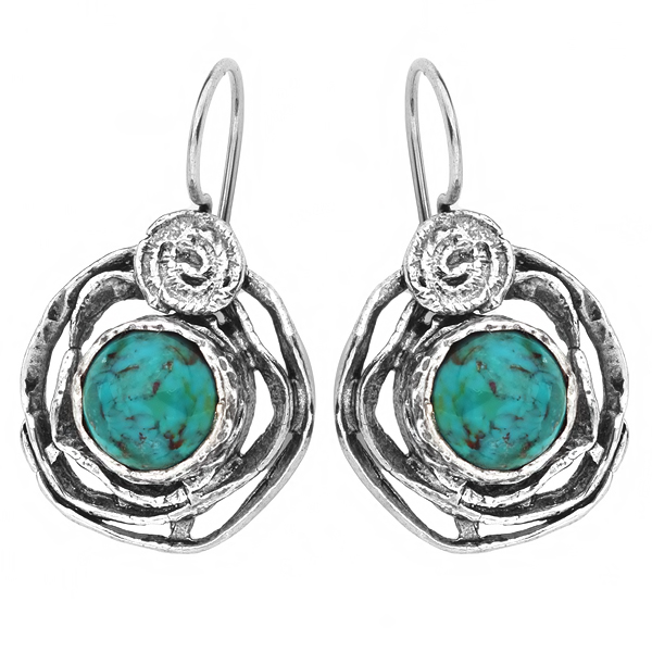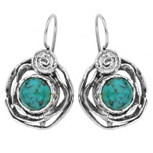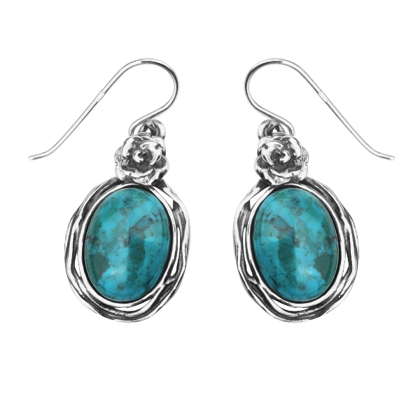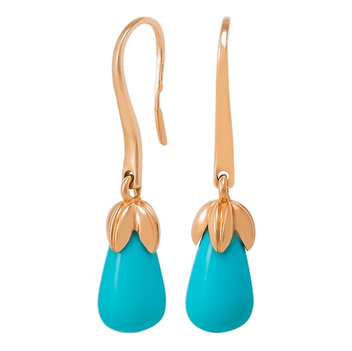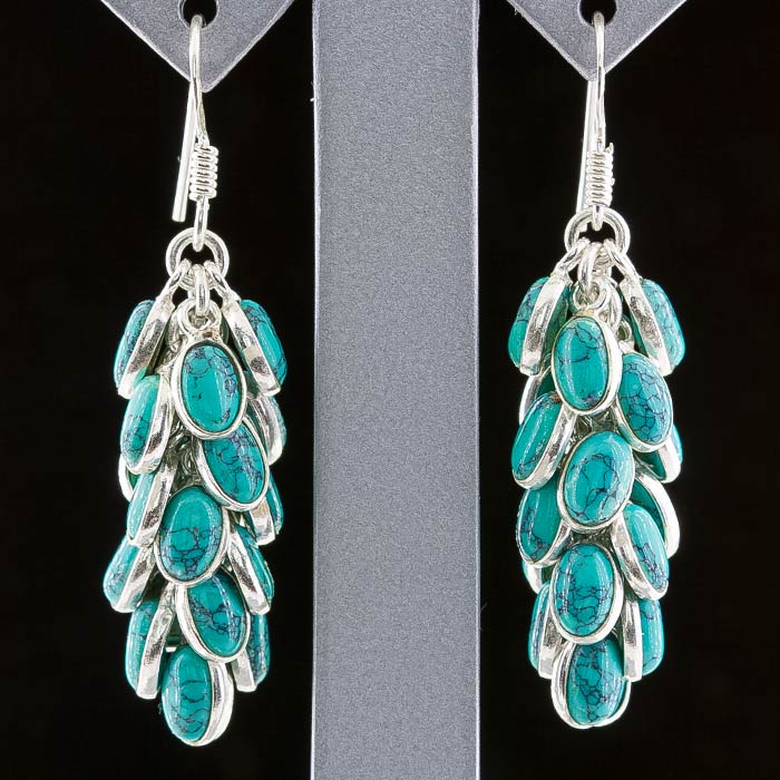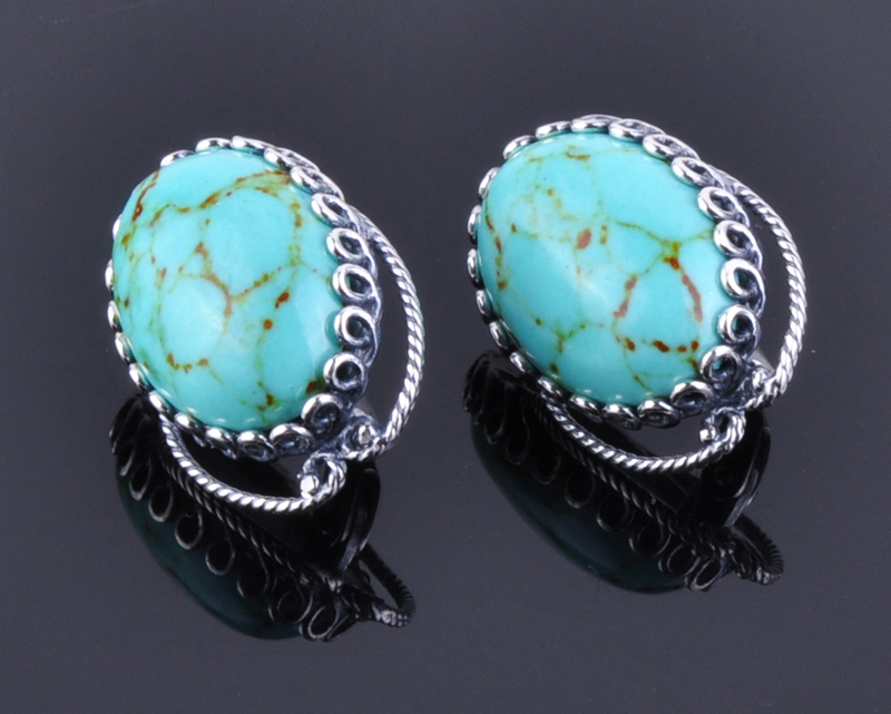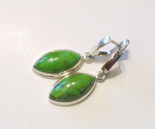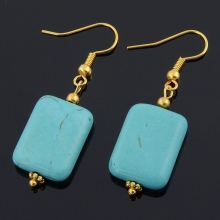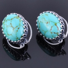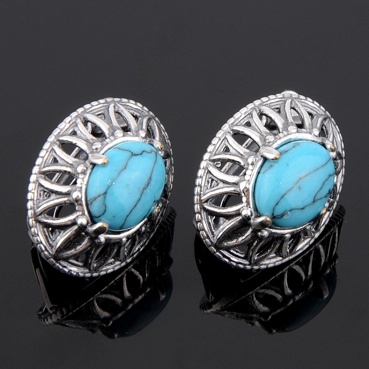 Sometimes inserts in earrings are made from reconstructed (restored, or pressed) turquoise. This means that the stone was obtained from a pressed powder of natural turquoise of different quality, special substances were used to bind natural material. Earrings with such inserts are included in the category of inexpensive jewelry.