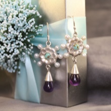 Earrings with inserts from this colored stone are represented by a very large number of models. It can be: