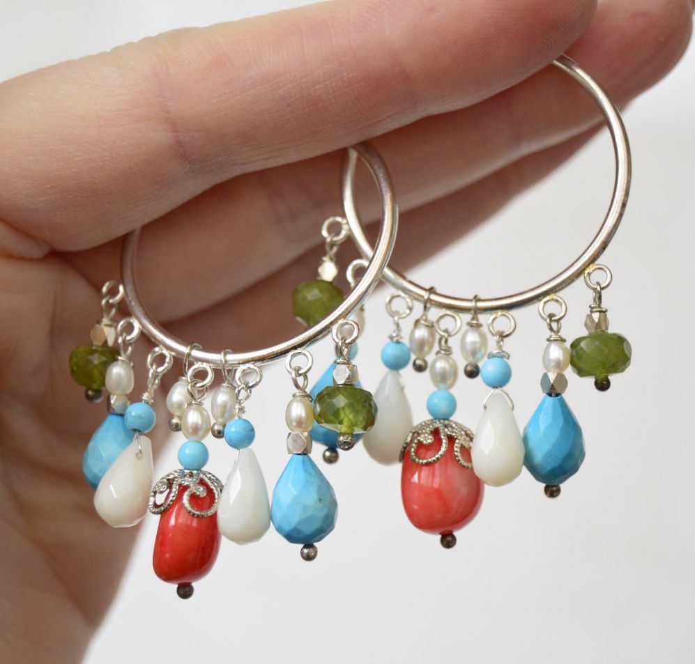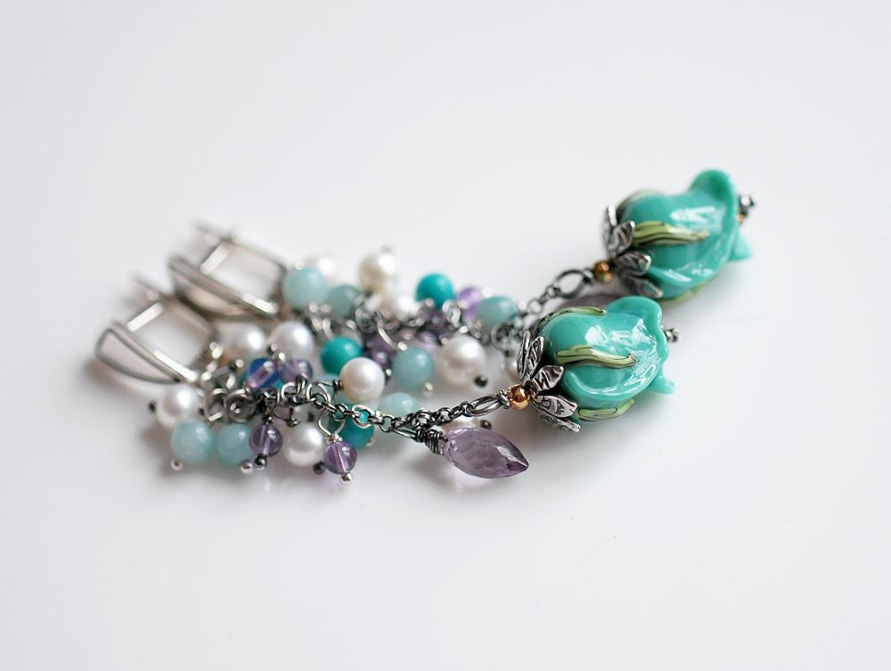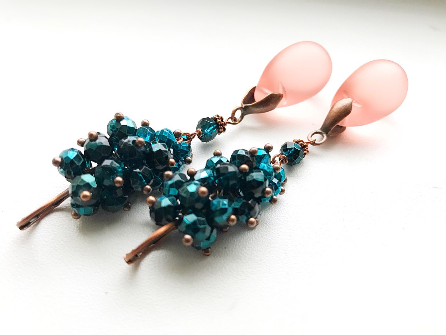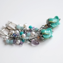 - Long earrings with "clusters" of small beads from the "stone of happiness";