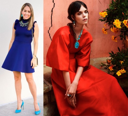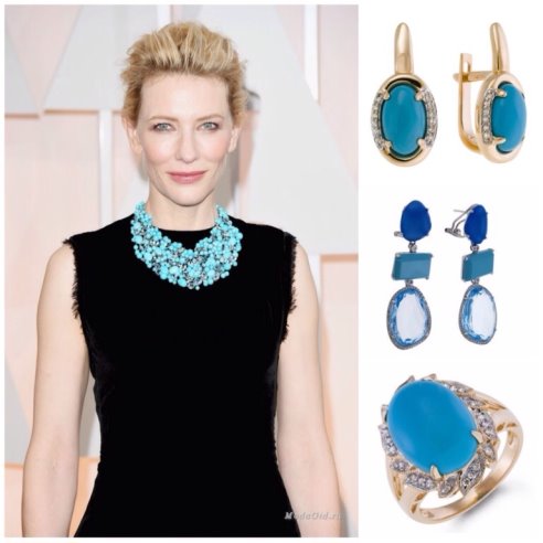 Effectively, the combination of turquoise with red stones; Green, blue, blue and purple are also often used, together with the “heavenly stone” they make up compositions in which the colors adjacent to the color wheel are combined. Fianits and marcasites are often used to frame a cabochon.