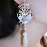 Chandelier earrings with stones that shimmer with all facets are more suitable for an evening out to the theater or for a holiday. More gentle options, in which stones are strung on a thread, like dew drops, I will come up to create girlish images for the graduation party.