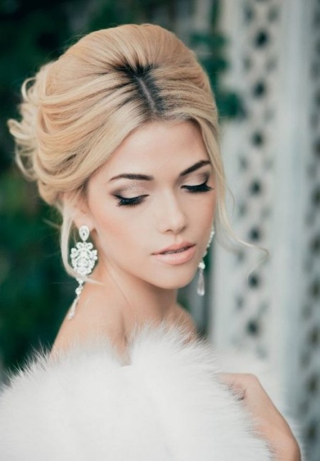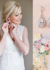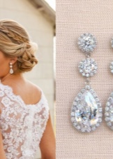 - Bridal outfit decoration. Here the sophisticated design of the earrings is combined with the soft texture of the cape fur and the high hairstyle, creating a luxurious, feminine look. It turned out a worthy alternative to diamonds.