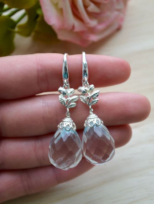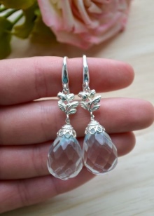 Earrings with rock crystal, clean, like a drop of water, look fresh and noble. It is no coincidence that another name for this stone is Arabic or Bohemian diamond. In ancient times, people believed that crystal minerals are pieces of ice that are frozen forever.