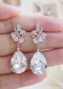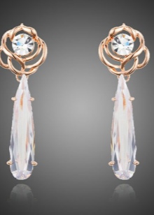 The choice of earrings with rock crystal should be determined by your color type and face shape. For a warm look of the exterior, gold-rimmed products are preferred. If you are a representative of a cold color type, then it is better to choose silver.