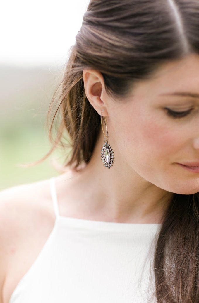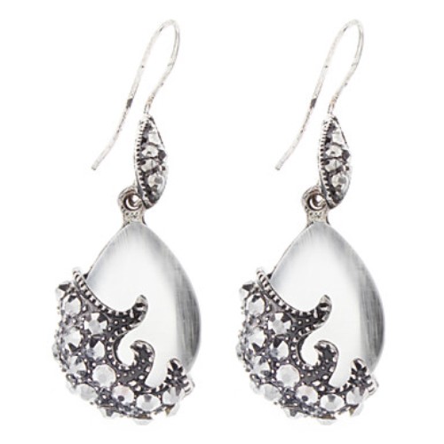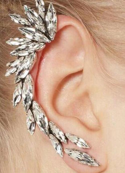 Rhinestone earrings can be made in gold or silver. The silver frame looks more harmonious with such a cold stone, but there are good solutions for a gold frame. The effect of aged silver or blackened versions is an additional decoration of the stone, which gives the feeling of ancient treasure.