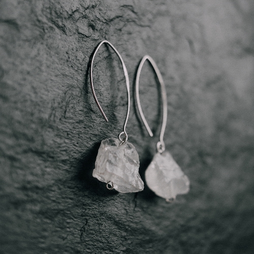 Not everyone knows, but earrings with an uncut stone look original. Mineral looks beautiful without any additional processing. Externally, the impression that the crystal is covered with frost.