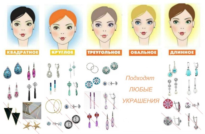 - Square.Owners of this form should pay attention to the hanging earrings in the form of an inverted triangle, as well as on the chain earrings.