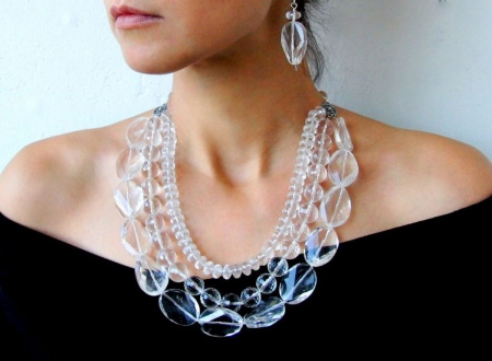 Often crystal jewelry is combined with other semi-precious and precious stones. Such sophisticated design models are well suited for visiting social events or, for example, dating. A pure, like a tear, mineral is an excellent solution for creating a gentle, wedding look.