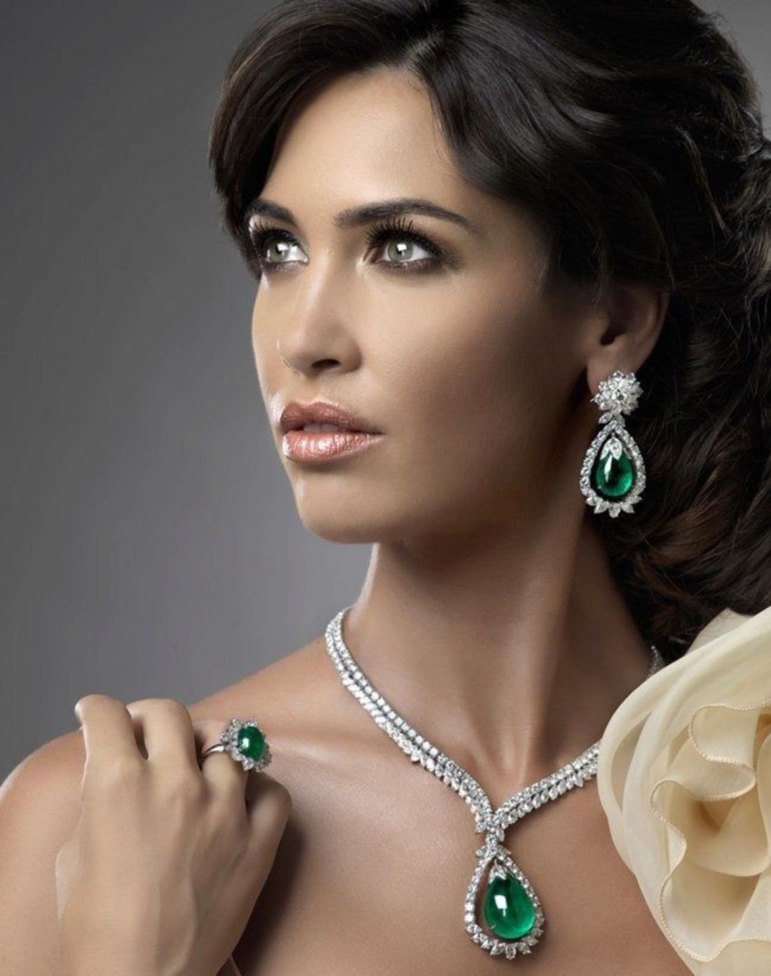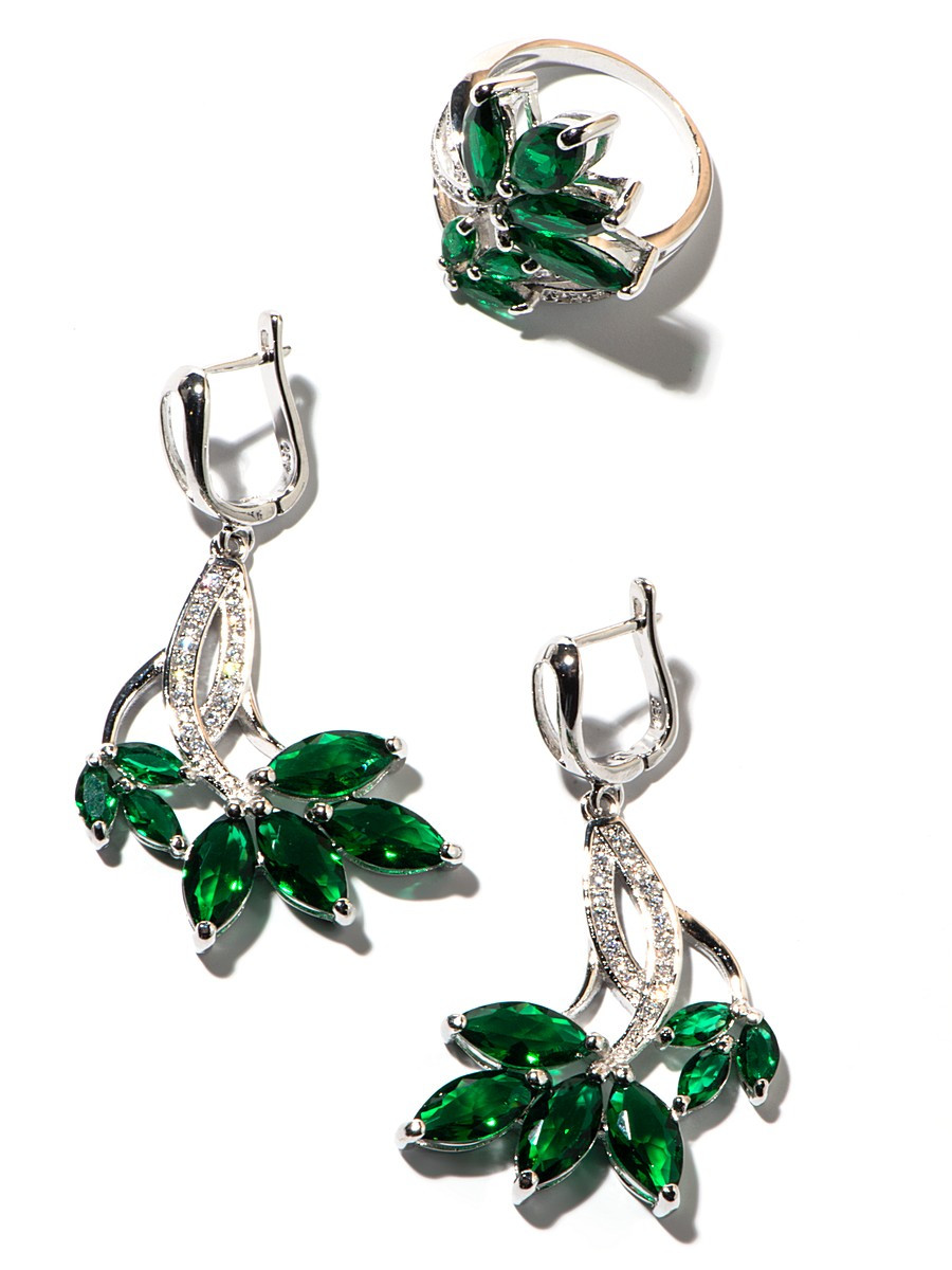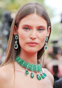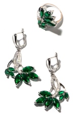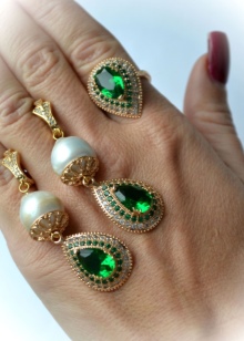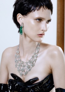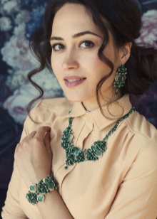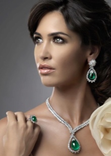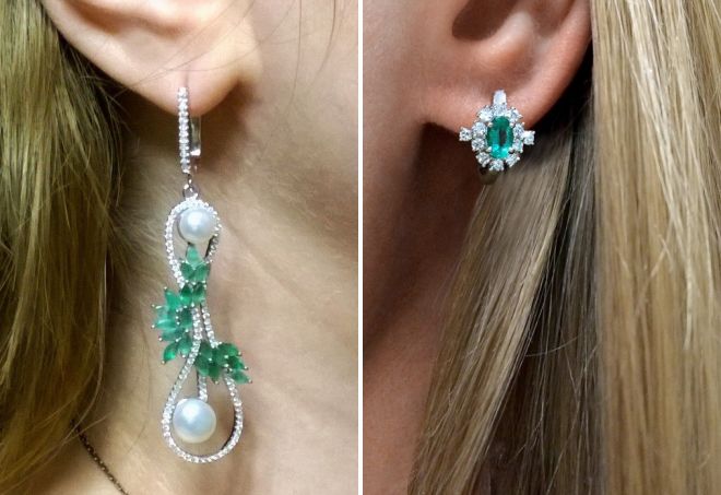 However, jewelry with emerald, although gold, even silver, is recommended to wear for evening events. Earrings with emeralds are perfect for evening wear, whether it is an elegant evening dress or a silk evening suit. Designers are advised to focus on a large emerald, but, as already mentioned, do not overdo it.