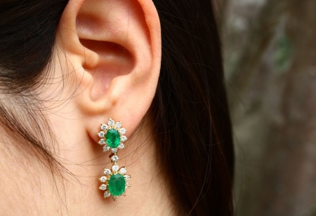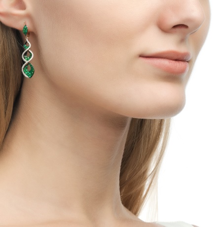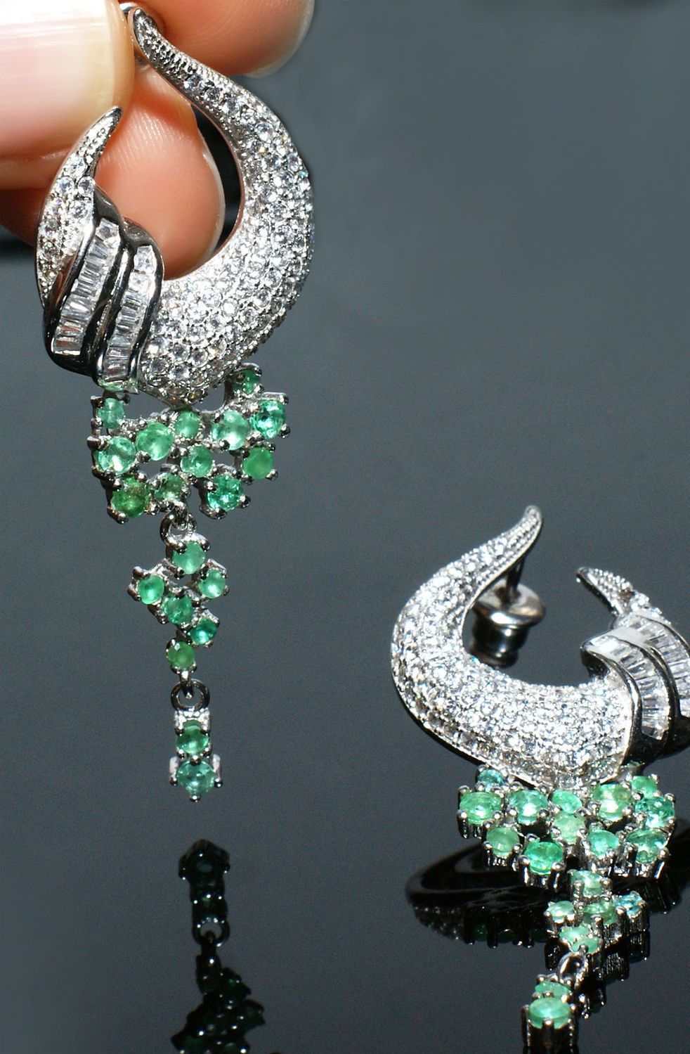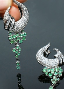 - Despite the fact that emerald earrings are already bright and bright, you can often see models of earrings with diamonds and emerald. This is a special chic. These earrings are worn on special and solemn occasions.