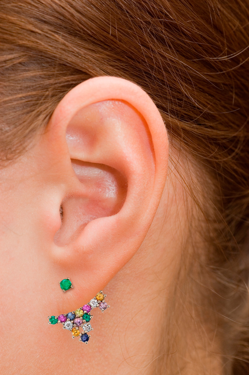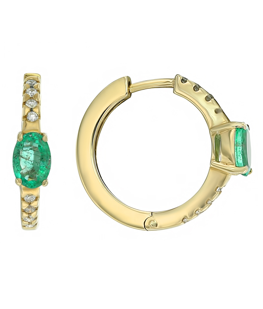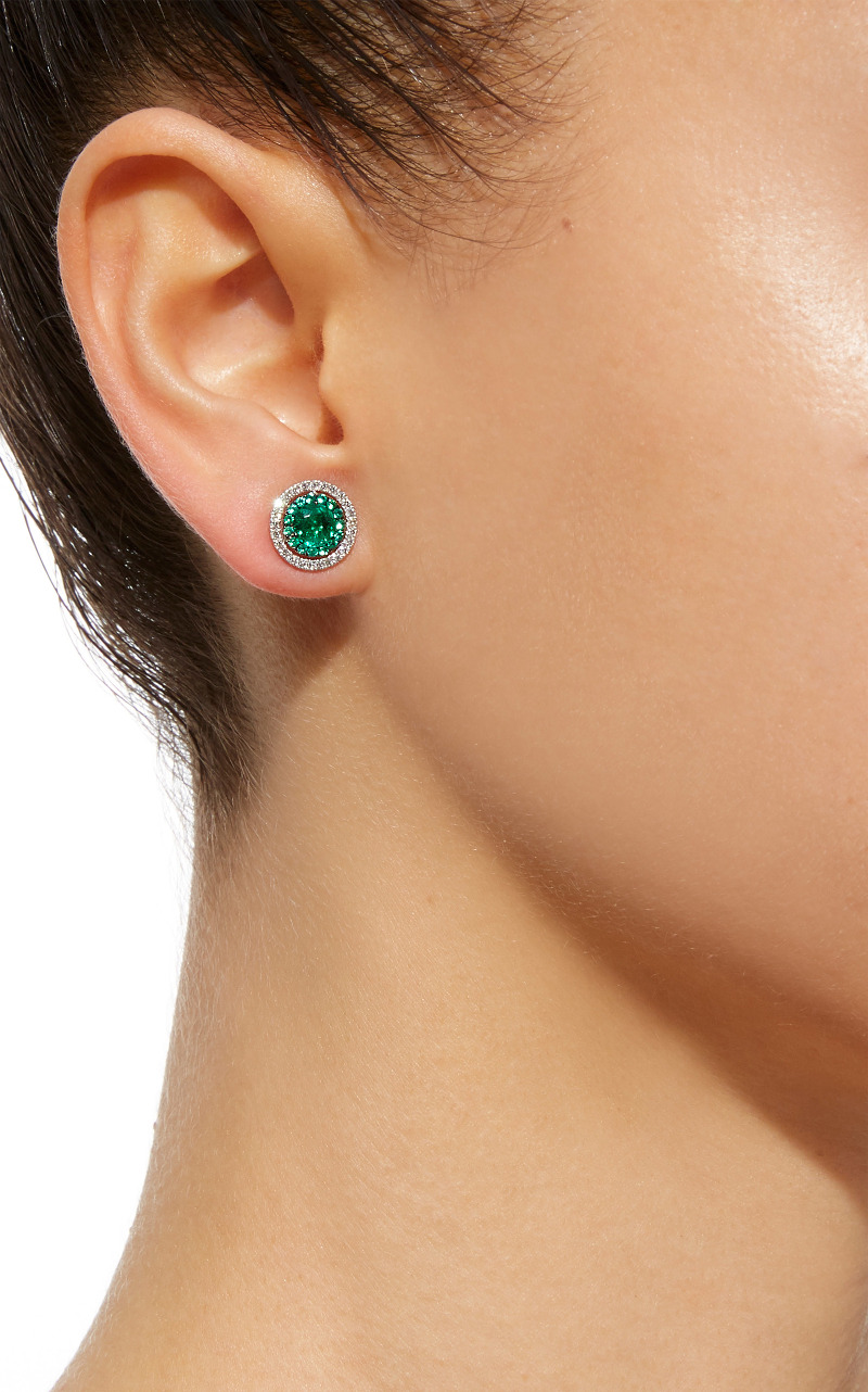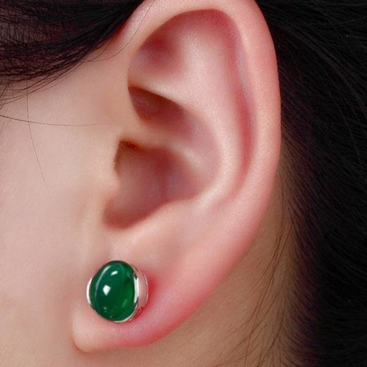 - Stud earrings are cute and simple, modest, but at the same time giving a highlight to their owner. The stone in them can be either without cut in general, or with a cut, usually a “rose”. If not cut, then it resembles a slightly clouded crystal.Other, smaller crystals, usually transparent: diamonds or zircons are often added to the faceted emerald. Such earrings can be made of gold and silver.