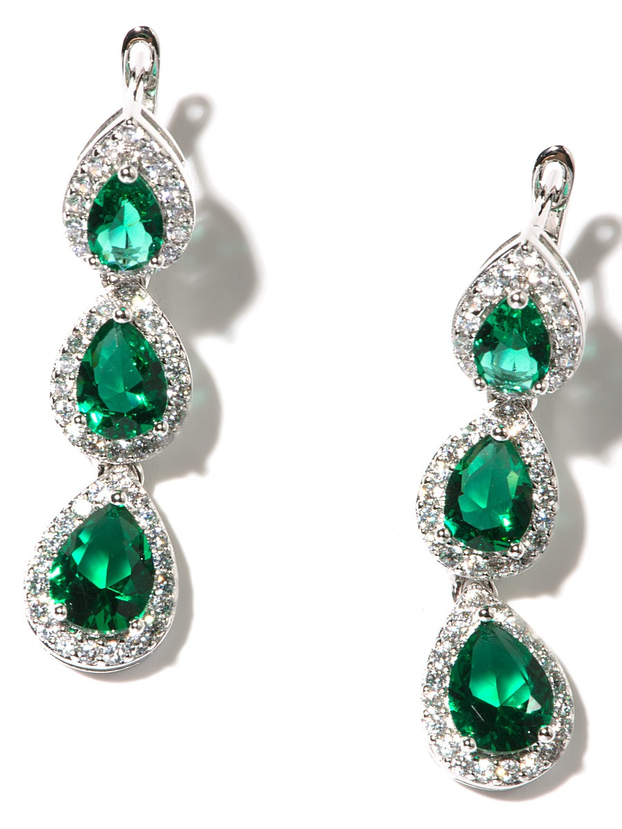 The stone perfectly shades other colors, and the neighborhood with green does not favor. Emerald earrings with black, gold, silver and white colors look especially impressive. At the same time it is desirable to choose monophonic clothes.