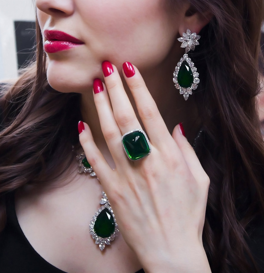 It is worth wearing jewelry with emerald after you are fully dressed, and your hair and makeup are finished, because during the application of lacquer or hair spray, or other chemical cosmetics products, drops can get on the stone, thereby spoiling its outer view. Moreover, if you save your jewelry from chemical exposure, you do not have to clean them often.