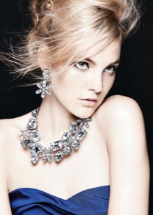 The second important nuance - the shape of your face, depends on it, how big and shape the stones should be. If you are chubby, choose earrings with small oblong inserts, and if the face is oval, drop-shaped pebbles will suit you.