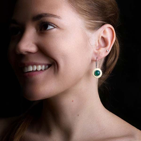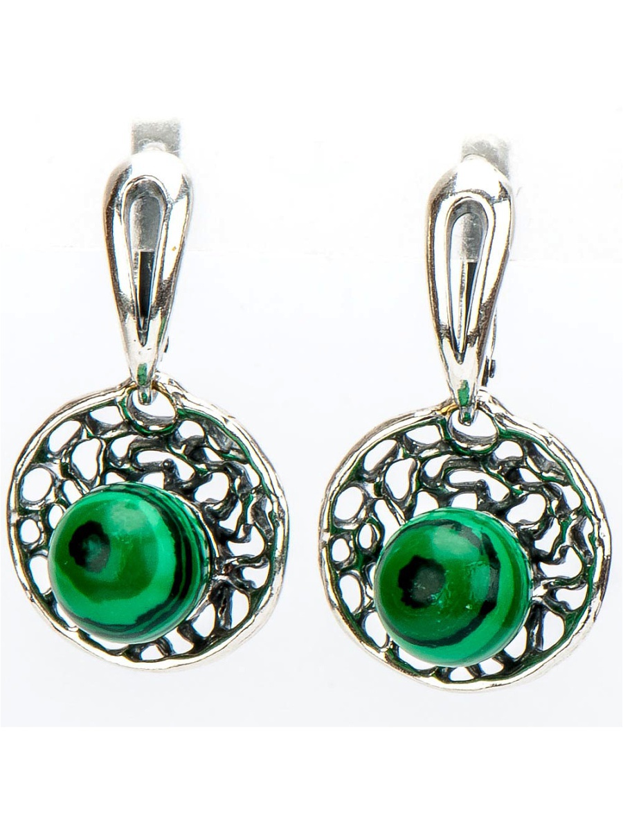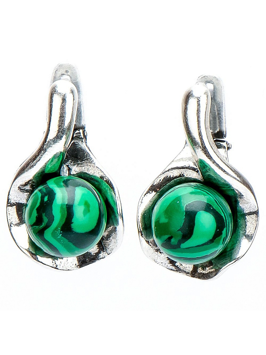 Small earrings with green onyx are suitable for everyday wear. They will look good with a sundress or dress, jeans and an air blouse.