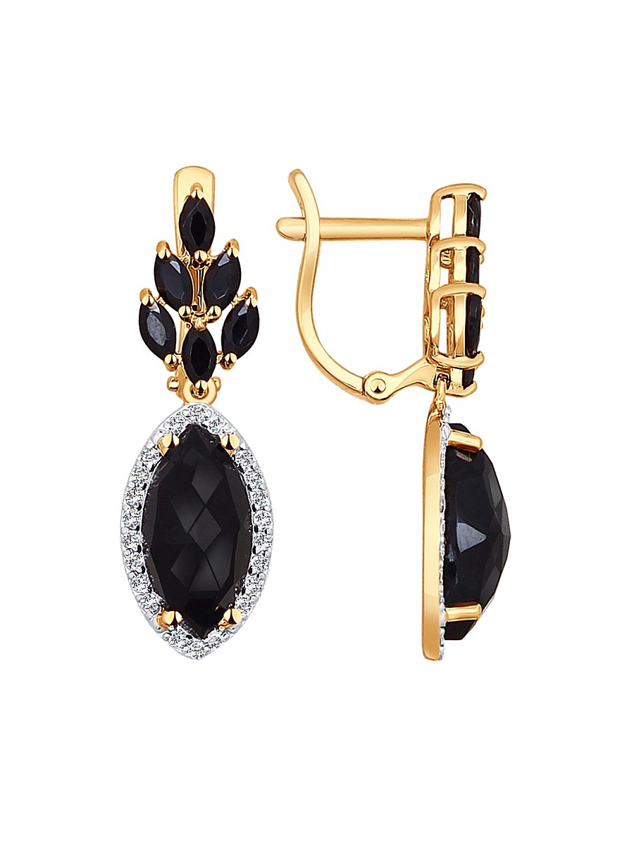 Gold is most often framed with precious minerals - diamonds, sapphires, emeralds. Budget casual earrings can be with synthetic analogues, for example, with cubic zirconias.