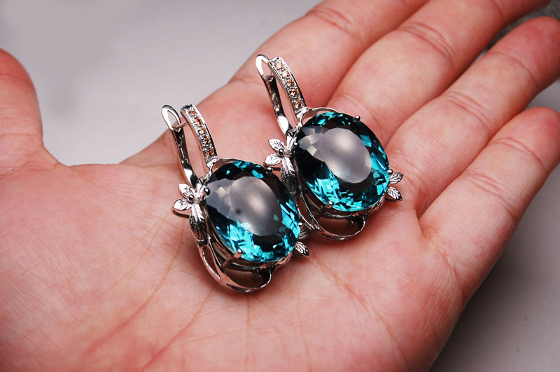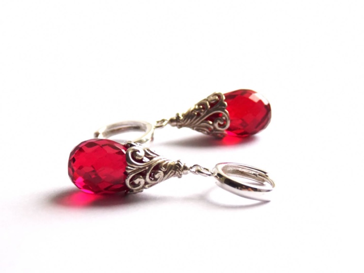 Earrings with artificial stones are popular due to the fact that their value is much lower than natural ones. They are a complete imitation of natural minerals, they are created from special synthetic materials according to modern technologies.