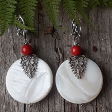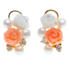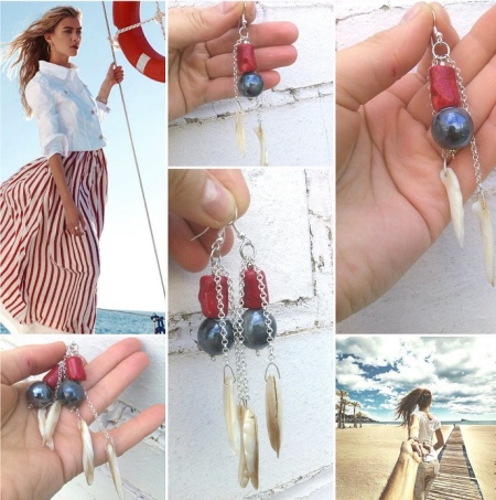 Interesting and original look models of jewelry, in which this mineral is an ensemble with different stones. Nacre is especially well combined with other riches of the sea depths - coral and pearls. Skillfully chosen combination of stones in earrings allows jewelers to create real masterpieces that will precisely set the tone for the feminine image of a fashionista.