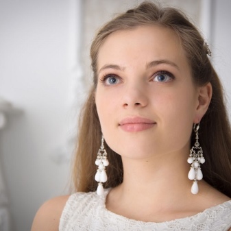 Choosing for yourself a pair of earrings with mother of pearl, it is necessary to pay attention to the shape of the face. For girls with a round face, small models of oblong shape are suitable; for girls with an oval face shape, it is better to select options with drop-shaped pendants.