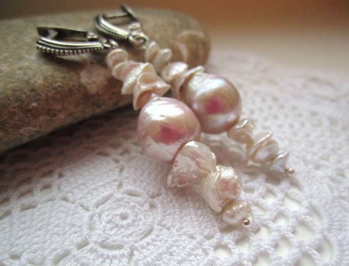 Lovely earrings with a stone in the shape of roses or hearts, fish or crescent will fall in love with young persons with a romantic mood. Simple and at the same time, the original forms of pearl jewelry perfectly complement the image of young beauties.