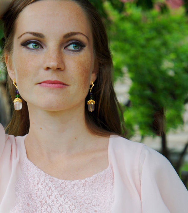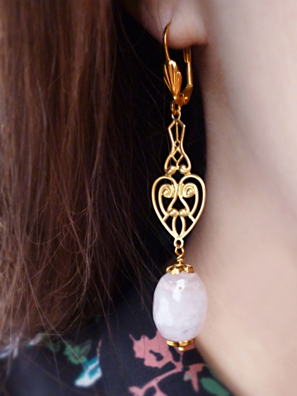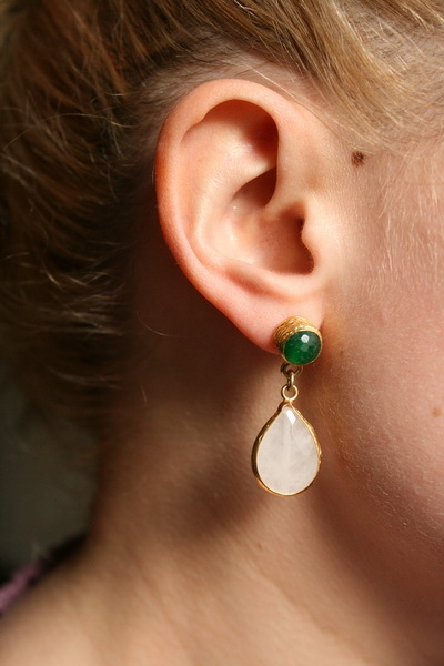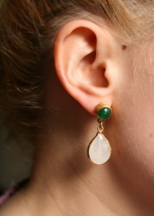 Women's earrings with this delicate stone are distinguished by their lightness and airiness. Ladies just love quartz for its richness of shades. It can be pale pink, white or bright purple.