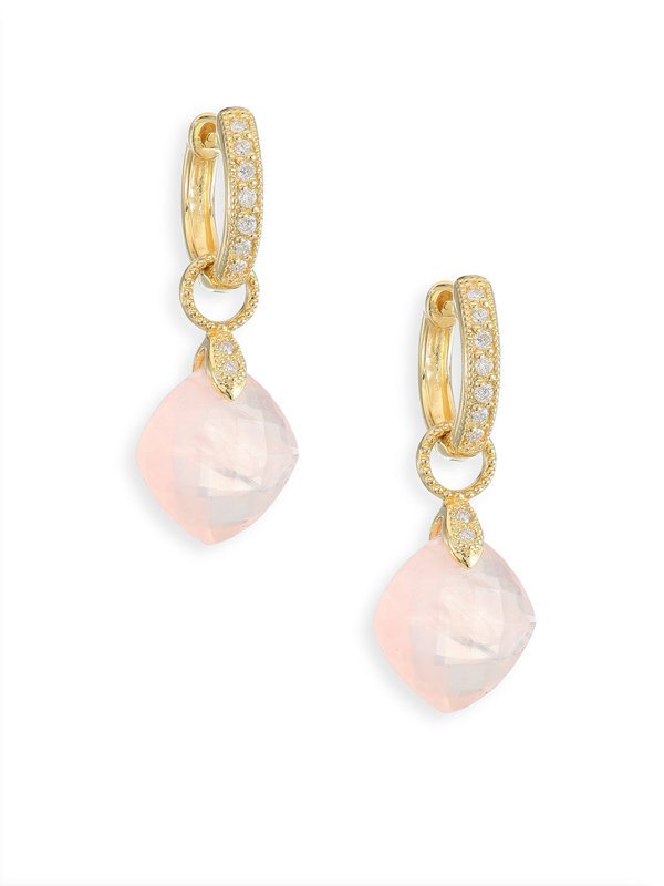 Quartz looks equally harmonious in both yellow and white or pink gold. Earrings with such components look very expensive and feminine.