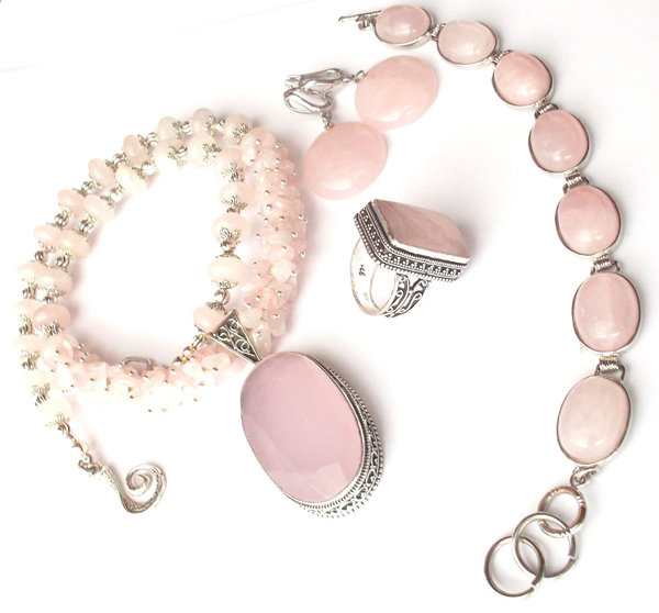 Rose quartz is versatile and can be combined with many stylish ensembles. It can be as ordinary jeans, and strict office or evening dresses. One has only to pay attention to the colors of clothing and quartz.