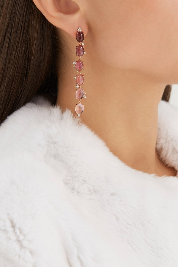 If you are a hot brunette or dark-haired brown-haired woman, then you can complement the image with gold earrings with quartz, which has a reddish tint.