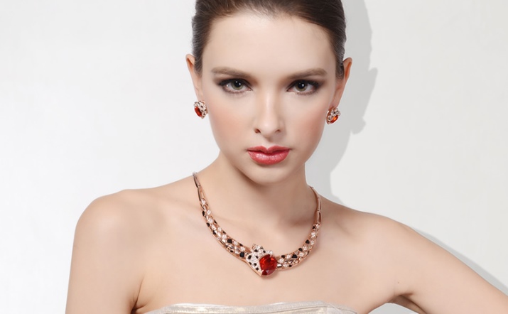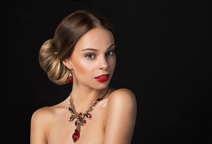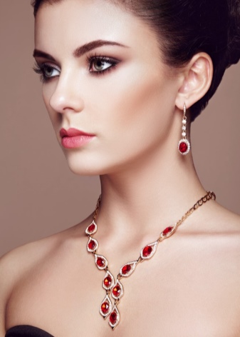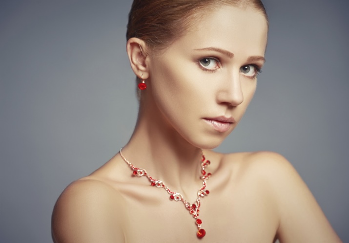 Such minerals differ in color. There are dark stones with rich red color, bright specimens, light and even pink. If the girl's appearance is contrasting and expressive, then the stones should choose saturated. But fair-haired ladies more suitable light stones.