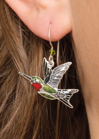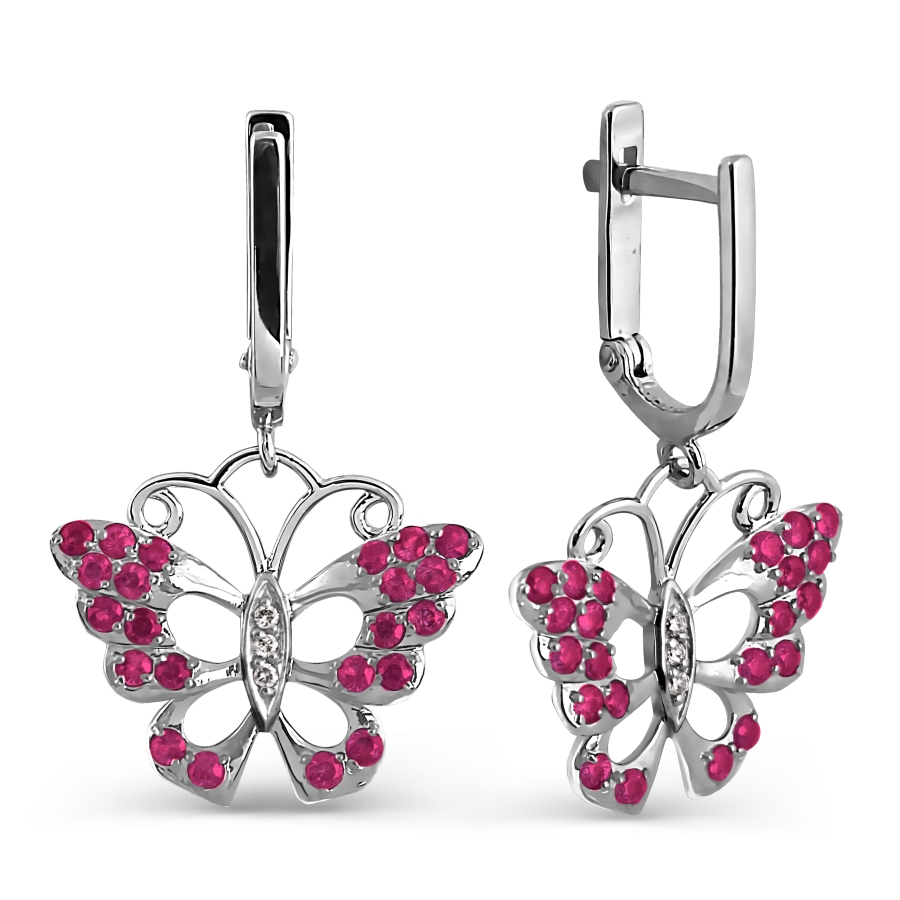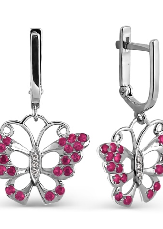 Earrings in the shape of a butterfly, whose wings are decorated with red stones, will surely please young ladies.In such products there is often a combination of two or more minerals.