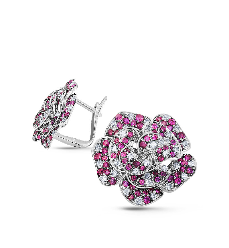 - Abstractions in a flower form with a scattering of rubies are more suitable for young ladies. In such jewelry is often combined several types of minerals.